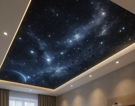 Она отражается не столько на качестве, сколько на сложности конструкции. Замерщик оценит объект, высоту стен, возможность установить выбранные светильники или превратить поверхность в звездное небо с фотопечатью.