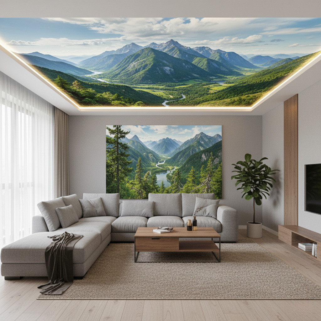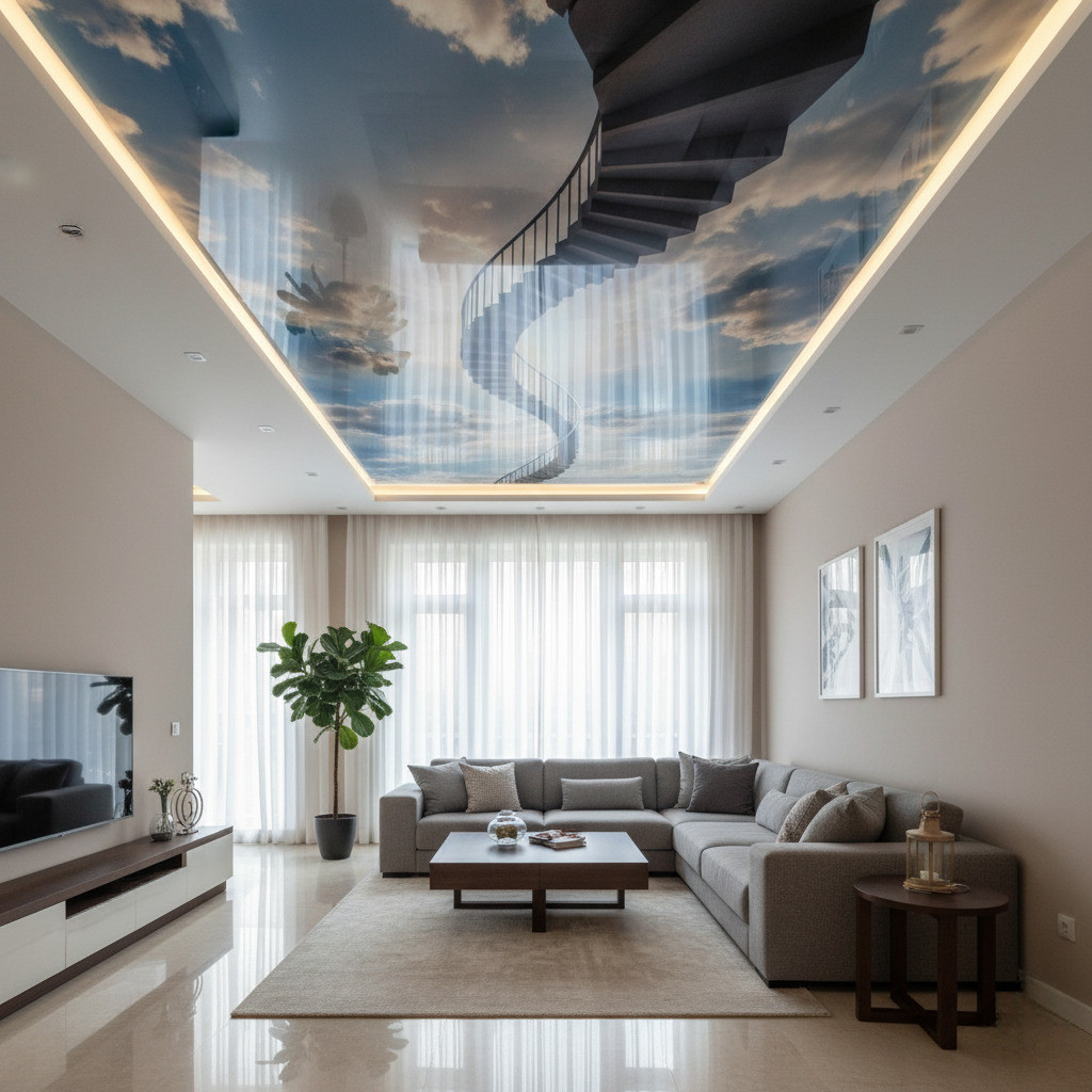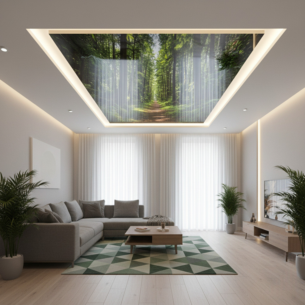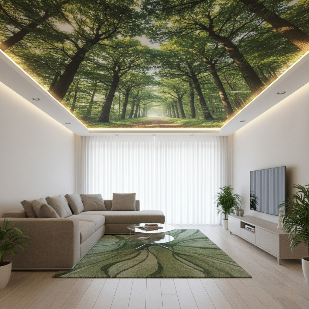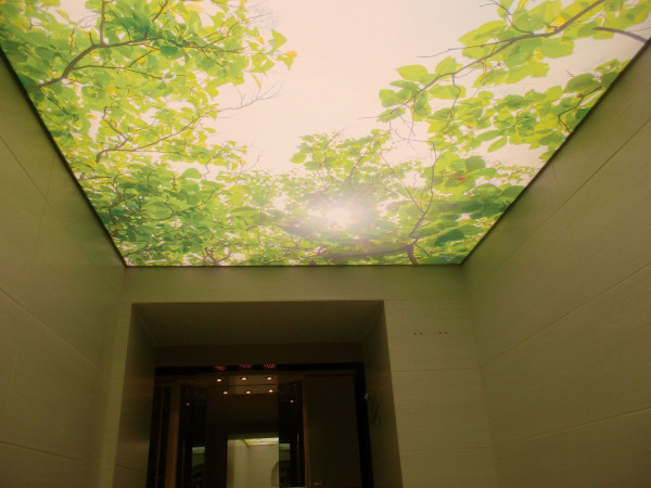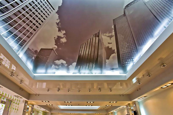 3D-натяжные потолки — это удивительная и завораживающая иллюзия у вас над головой. Кроны деревьев, солнечные лучи, крыши небоскребов создают эффект присутствия. Вы будто бы находитесь в городе или лесу.