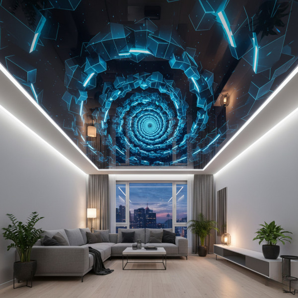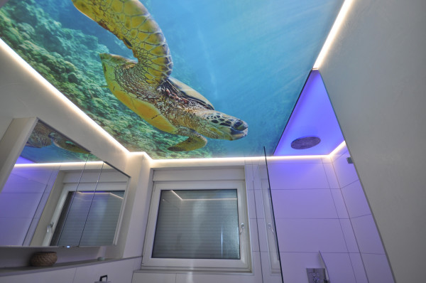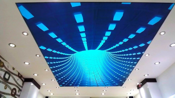 Особенно хорошо смотрятся 3Д-потолки с подсветкой. Она оживляет картинку, делают ее более реалистичной и яркой.