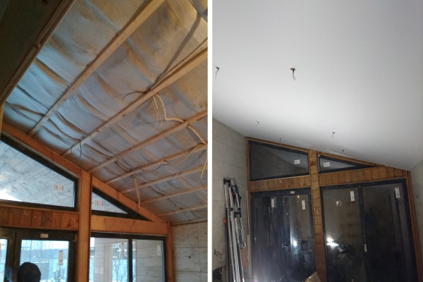 Вы можете выбрать способ крепления материала к стенам, оформить его бесщелевым или теневым способом, что еще большесделает потолок похожим на гипоскартонный или оштукатуренный.