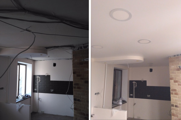 Матовая пленка хороша для детских, спален, столовых. Такое покрытие, выполненное в белом цвете, не отличается визуально от гипсокартонных потолков или оштукатуренных с побелкой. Но на их создание уйдет от недели, до месяца черновых малоприятных работ с выносом мебели, подготовкой комнаты и последующей уборкой. А натяжные полотна устанавливаются буквально за пару часов.