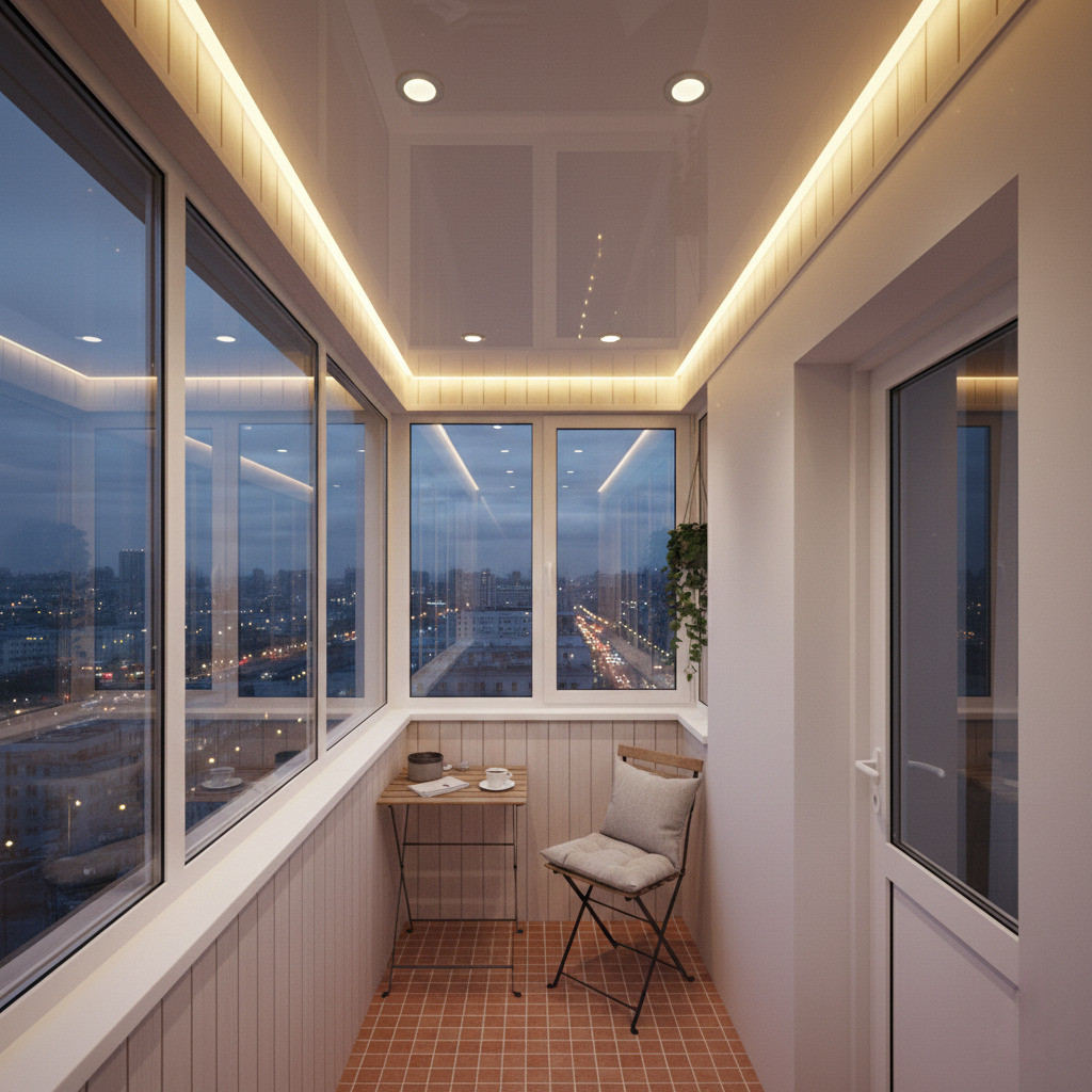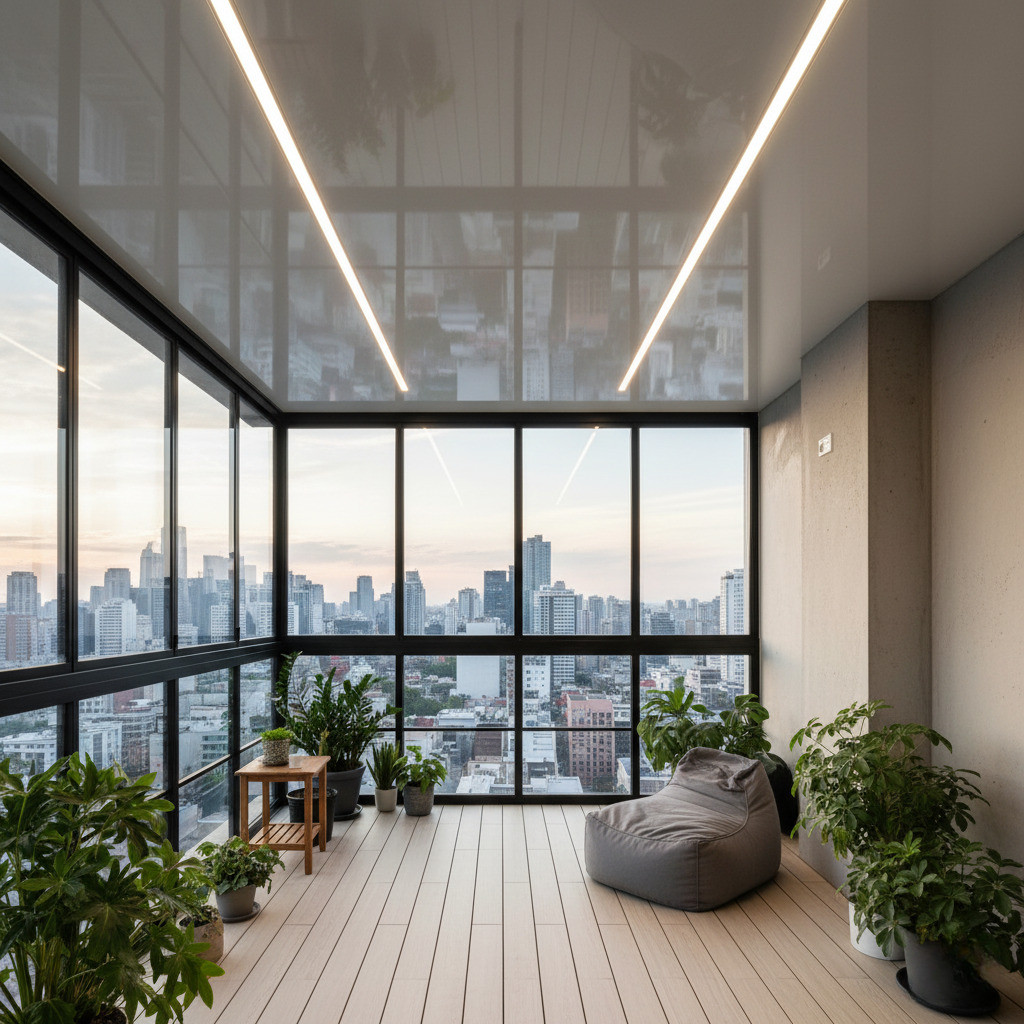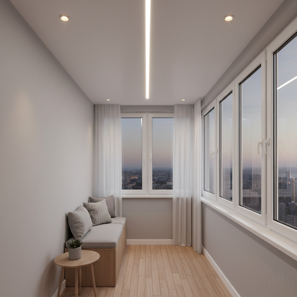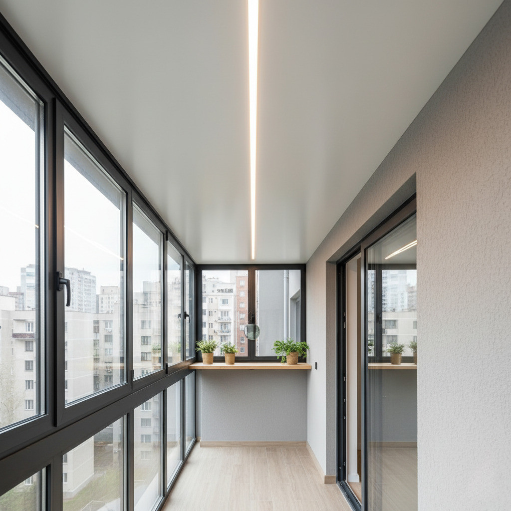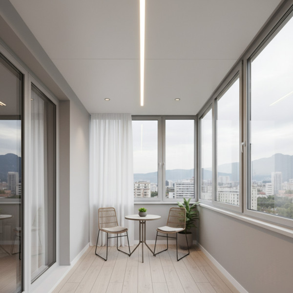 Выбор отделки на балкон имеет свою специфику. Подобранные материалы не должны бояться влаги, высоких и очень низких температур. Кроме того, отделка должна быть устойчива к воздействию прямых солнечных лучей – если материалы будут выгорать, то интерьер окажется непривлекательным. Всем указанным параметрам отвечают натяжные современные потолки. Помимо своего высокого качества, они также отличаются простотой монтажа – для установки таких полотен потребуется не больше нескольких часов.