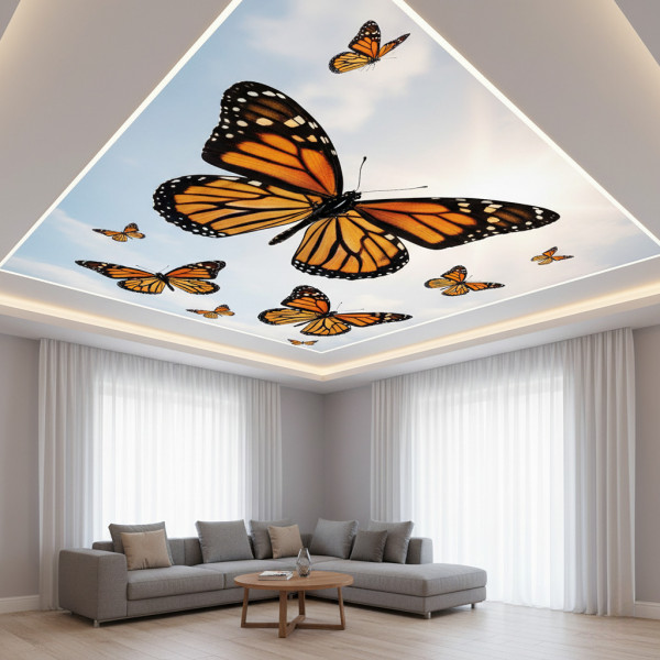 Фотопечать легко наносится как на пленку ПВХ, так и на тканевый потолок, а вы выбираете сюжет из нашей базы изображений в высоком разрешении. Такое полотно служит не менее 15 лет, не выцветает под воздействием солнечных лучей, не тускнеет от времени. Краска не трескается и не стирается.