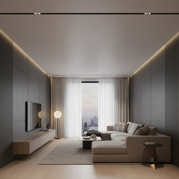 Это не только нишевый свет, но целая технология крепежа. В отличие от привычных способов крепления (гарпун, штапик, клипса), SLOTT не требует маскировочных лент по периметру, который предстает в виде теневого зазора с идеальной геометрией стыков.