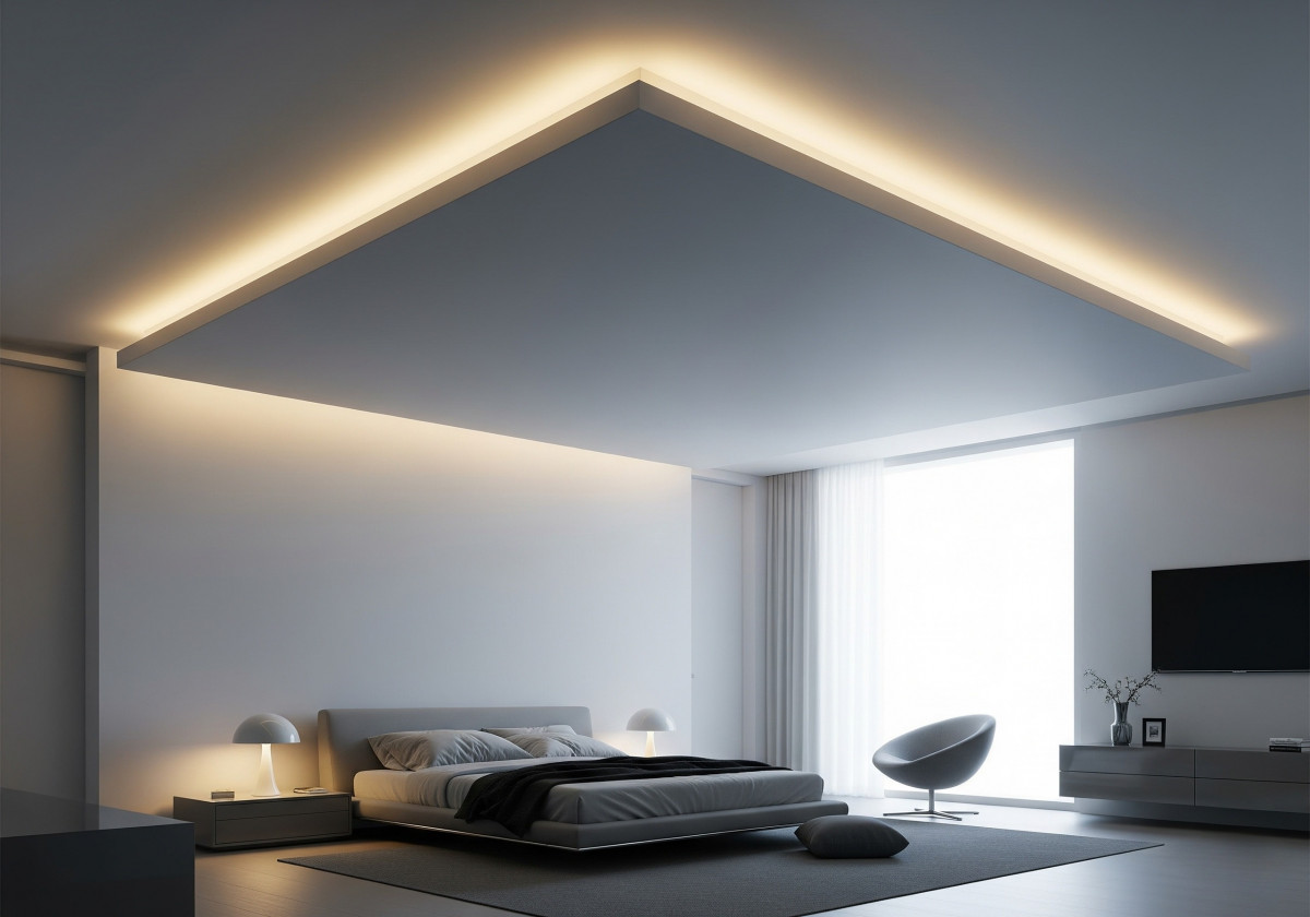 Светодиодные ленты расходуют совсем немного электричества, обеспечивая при этом площадь комнаты достаточным светом.