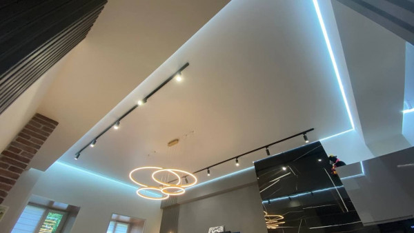 Натяжные потолки с трековыми светильниками станут интересным решением для вашего интерьера. Если раньше такой способ подсвечивать пространство можно было встретить только в музеях, магазинах и торговых центрах, то сегодня дизайнеры смогли воплотить в жизнь его и в жилых домах.
