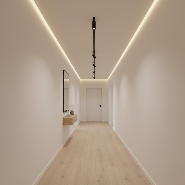 Плюс трекового освещения в том, что оно подсвечивает точечно выбранную зону комнаты. Чаще всего треки ставят вдоль стен, чтобы подчеркивать рельеф отделки или предметы искусства. Если использовать не один трек, а группу из трех-четырех, их можно устанавливать в середине комнаты для получения полноценного освещения.