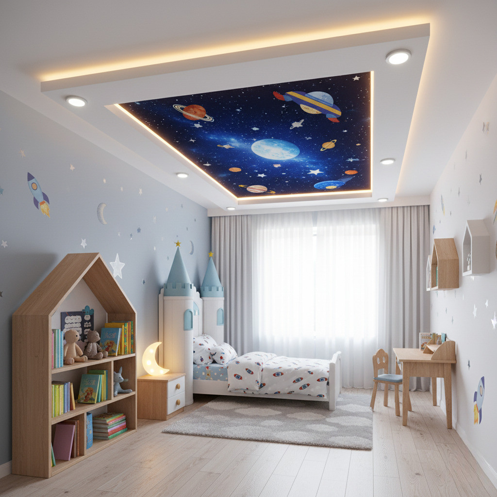 Почему стоит заказать в детскую комнату натяжной потолок?