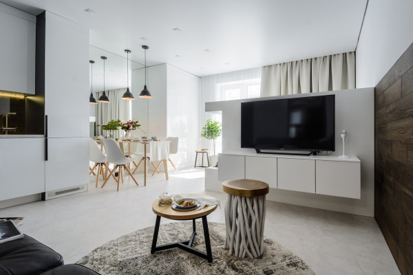 Сатиновый натяжной потолок называется так не только потому, что похож издалека на шелковую ткань своим мягким блеском, он является серединой между пленкой с ярким отражением и совсем матовой.